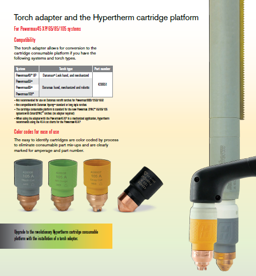 Protect your investment. Choose genuine Hypertherm torches and consumables to keep your Powermax® system running at peak performance. Incorporating the latest technologies and manufactured to the highest standards, Hypertherm consumables enhance cut quality, extend consumable life, and boost productivity.